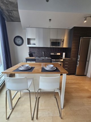 LOFT À LOUER,au couer de la vie urbain TOUT MEUBLÉ emplacement privilégié dans Vieux-Montréal, confort et style.Situé au 7 étage, il bénéficie d'une belle luminosité naturelle, d'un aménagement moderne et plafonds hauts. Profitez de toutes les commodités et installations offertes par le M9 Phase 4. Idéalement situé avec une allure contemporaine et urbaine,ce condo de style loft est à proximité des stations de métro Square Victoria et Bonaventure.Cuisine moderne est équipée d'un îlot pratique pour les repas,tous les électroménagers sont inclus,Enquête de crédit obligatoire et assurance-Animaux permis sous condition.Occupation IMMÉDIATE.
